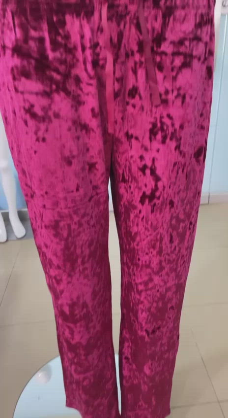 This is a wide leg crushed velvet pajama pants. It is made of very smooth and soft crushed velvet, you will never want to take these off. You can wear it as a sleep pant or lounge wear.