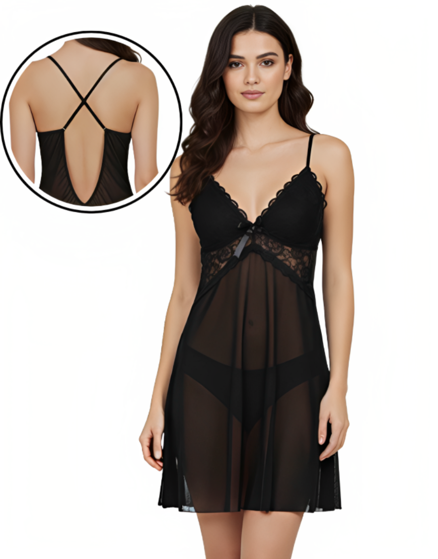 Losha 2 piece Romantic Lace Mesh Nighty-Black